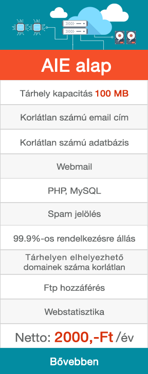 Az induló vagy kisebb tárhelyet foglaló weboldalak tulajdonosainak ajánljuk az AIE alap hosting csomagunkat.